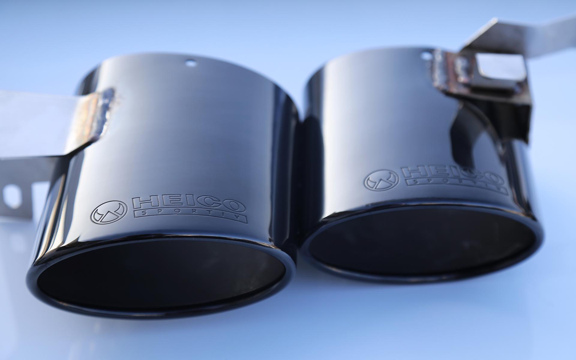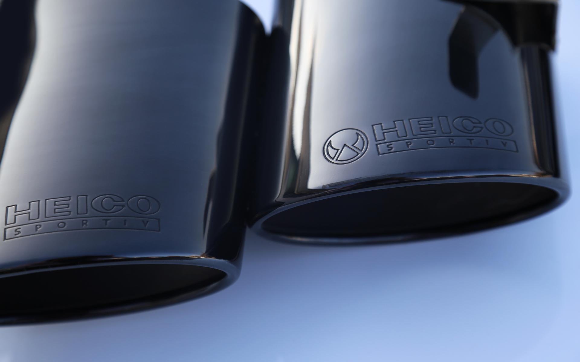 3ピースリアスカート、アクティブフラップコントロール付き触媒コンバーターを含むステンレススチール製システム一式、HEICO SPORTIVロゴ入りブラッククローム仕上げの楕円形ステンレススチール製テールパイプ4本、OBDコネクター、マウントキット。